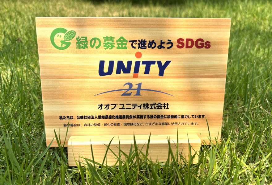 2025年07月14日(月) 「緑の募金」のSDG'sプレート 弊社は、より豊かな社会と環境の実現を目指し、「緑の募金」に寄付を行いました。 この募金活動は、森林づくりや自然環境の保全、次世代への教育支援などを通じて、緑あふれる持続可能な地域社会を築くことを目的としています。弊社はこの理念に深く共感し、地域と自然への感謝の気持ちを込めて、微力ながら協力させていただきました。 これからも、企業としての責任を果たすだけでなく、心の通う社会づくりに貢献してまいります